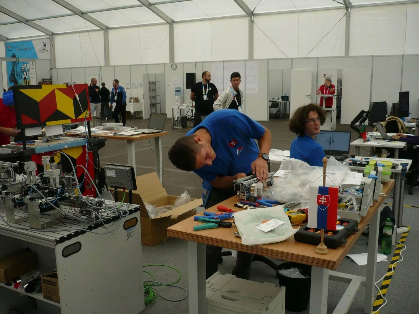 Těšili jsme moc už i z toho důvodu, že po dlouhých letech měla na této akci zastoupení také Česká republika. Hospodářská komora ČR, jako národní koordinátor a člen WorldSkills Europe zodpovídala nejen za splnění podmínek pořadatele, ale současně také za dodržování mezinárodních pravidel všemi členy národního týmu, který reprezentoval ČR ve čtyřech oborech. Vše je zde do detailu předepsané, jednotlivé státy musí nastoupit v čele s oficiálním delegátem dané země, technický delegát zajišťuje veškerou agendu, každý soutěžící má svého experta, který je jeho mentorem a osobním koučem, součástí každého národního týmu je tzv. teamleader. Připomíná Vám to něco? Ano, je to opravdu olympiáda! Toto a mnoho dalšího nám při setkání v pátek u hlavního vchodu Schwarzl Freizeitzentrum vysvětlil pan Roman Pommer, oficiální delegát ČR v Grazu a také víceprezident Hospodářské komory ČR. Byl nám skvělým průvodcem a zároveň nám představil všechna čtyři soutěžní pracoviště našich borců. Bohužel nedošlo na žádné velké skandování typu „kdo neskáče není Čech“ (a to jsme se tak těšili, SŠTE Olomoucká zajistila dokonce i vlajku…). Soutěžní pravidla totiž vyžadují u řady oborů absolutní klid, aby se soutěžící mohli na výkon maximálně soustředit Jediné místo, kde jsme si mohli trošku zamávat vlajkou a zavolat na Davida, jak moc mu fandíme a že je opravdu frajer, byla soutěž malířů a tady jsme si všechno vynahradili. Ne nadarmo rakouská média přiblížila soutěž slovy „tam, kde se z pracovní síly stávají hrdinové“. Všichni dali totiž do soutěže opravdové a absolutní maximum.